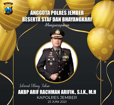Anggota Polres Jember Beserta Staf dan Bhayangkari Mengucapkan Selamat Ulang Tahun AKBP Arif Rachman Arifin., S.I.K., M.H