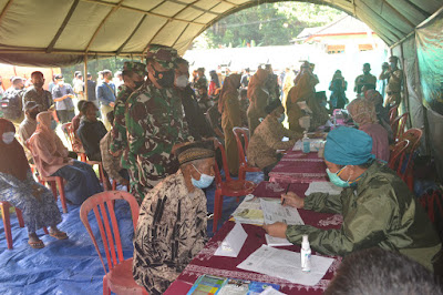 SeputarKita, Magetan – Sebagai bentuk kepedulian TNI terhadap masyarakat tentang pentingnya kesehatan serta untuk mempererat Kemanunggalan TNI Rakyat, Satgas Tentara Manunggal Membangun Desa (TMMD) ke-111, Kodim 0804/Magetan bekerjasama dengan Poskes dan Dinas Kesehatan Kab. Magetan menggelar pelayanan kesehatan gratis di lokasi TMMD Desa Gonggang, Kecamatan Poncol. Kamis (17/06/2021).