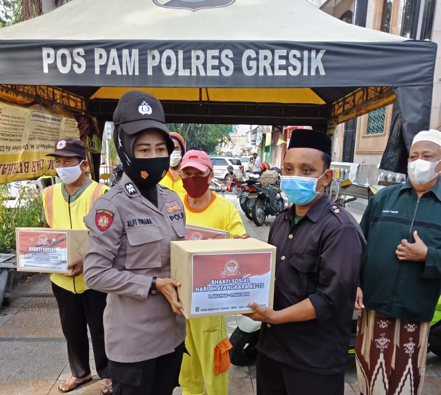 “Pelaksanaan kegiatan Bhakti Sosial untuk membersihkan Taman Makam Pahlawan, Masjid Jami’, TITD Kim Hin Kiong Gresik dan Gereje Santa Perawan Maria dilanjutkan memberikan sembako,” ucapnya.
