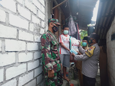 SeputarKita, Gresik – Bhabinkamtibmas dan Babinsa salurkan sembako kepada masyarakat terdampak pandemi Covid-19. Bantuan berupa masker kesehatan dan beras total 5 ton.