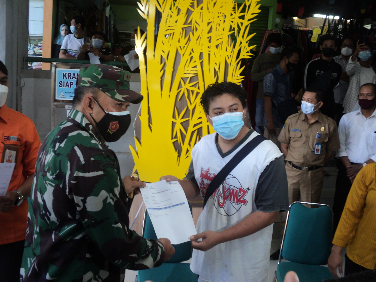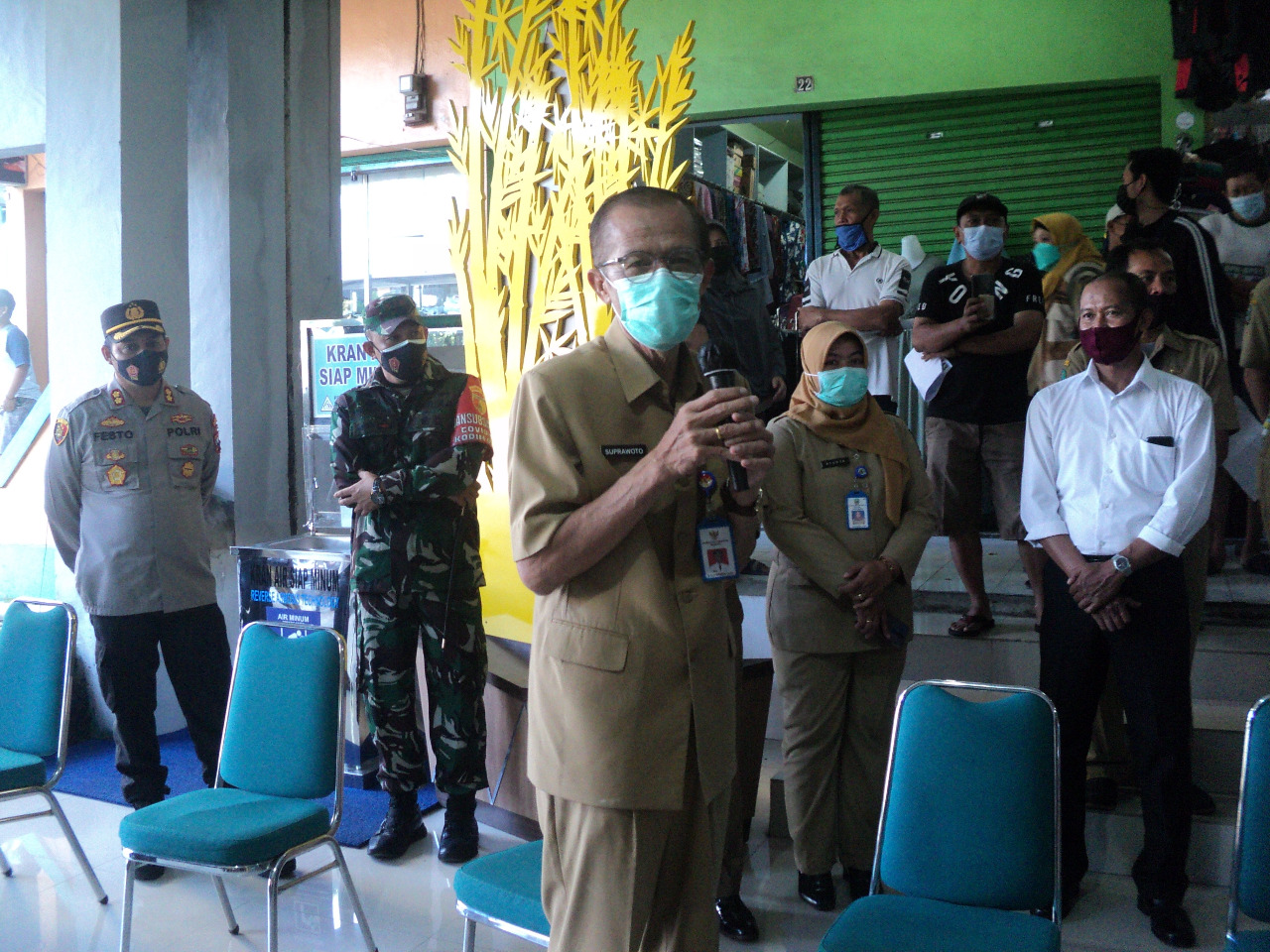 SeputarKita, Magetan – Bupati Magetan Suprawoto didampingi Dandim 0804/Magetan Letkol Inf Ismulyono Tri Widodo bersama Kapolres Magetan AKBP Festo Ari Permana dan Kepala Dinas Kesehatan Kabupaten Magetan meninjau langsung pelaksanaan Vaksinasi Covid 19 bagi para pedagang dan pelaku usaha di Mall Pelayanan Publik Magetan, Selasa (22/06/2021).
