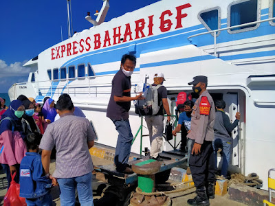 Sasar pelabuhan penyeberangan, baik penumpang kapal yang hendak berlayar ke Gresik maupun yang baru mendarat diimbau, wajib memakai masker, Minggu (6/6/2021).