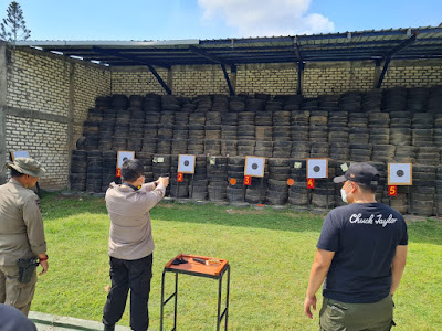 Menggunakan pistol semi otomatis jenis Glock dan senapan serbu, mantan Kapolres Ponorogo itu menunjukkan kemahiran menembak jitu.