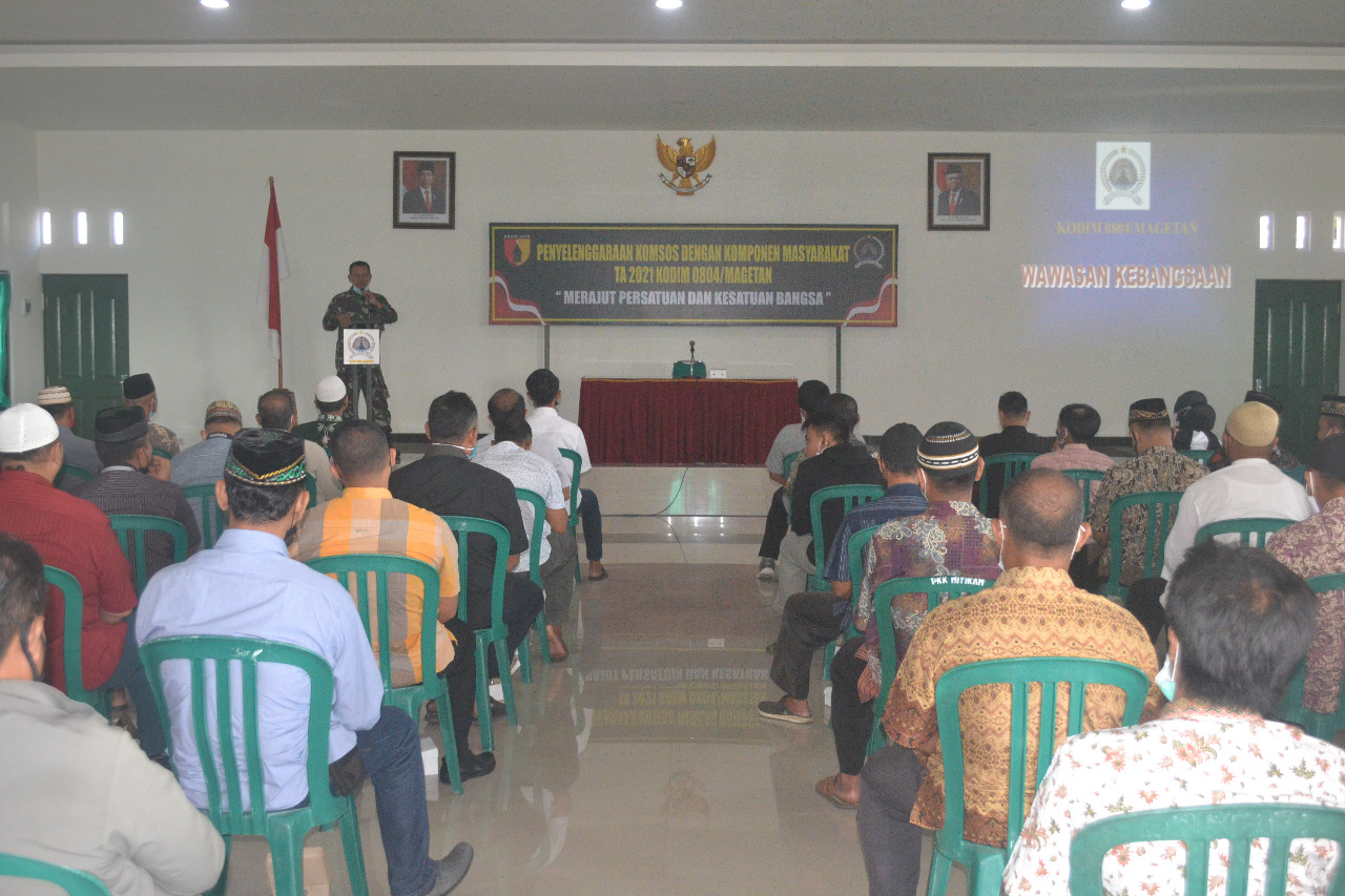 Hal itu disampaikan oleh Komandan Kodim 0804/Magetan, Letnan Kolonel Inf Ismulyono Tri Widodo saat memberikan sambutan pada acara kegiatan Komunikasi Sosial dengan Aparat Pemerintah Tahun 2021 di Aula Kodim 0804/Magetan Jl Panglima Sudirman No 42 Magetan (22/06/2021).
