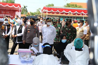 SeputarKita, Surabaya – Menteri Kesehatan (Menkes) RI, Panglima TNI, Kapolri, dan Kepala BNPB, serta Forkopimda Jawa Timur gelar rapat koordinasi dengan Muspika di seluruh kabupaten Bangkalan, pada Sabtu (19/6/2021), di Gedung serba guna Rato Ebuh, Bangkalan.