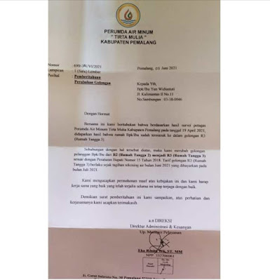 Direktur Tirta Mulia Pemalang, Slamet Efendi mengatakan, petugas akan melakukan survei ulang kepada pelanggan rumah terutama yang masuk kelompok (R)2 yang dilihat secara fisik bangunan rumah sudah layak atau masuk kelompok (R)3.