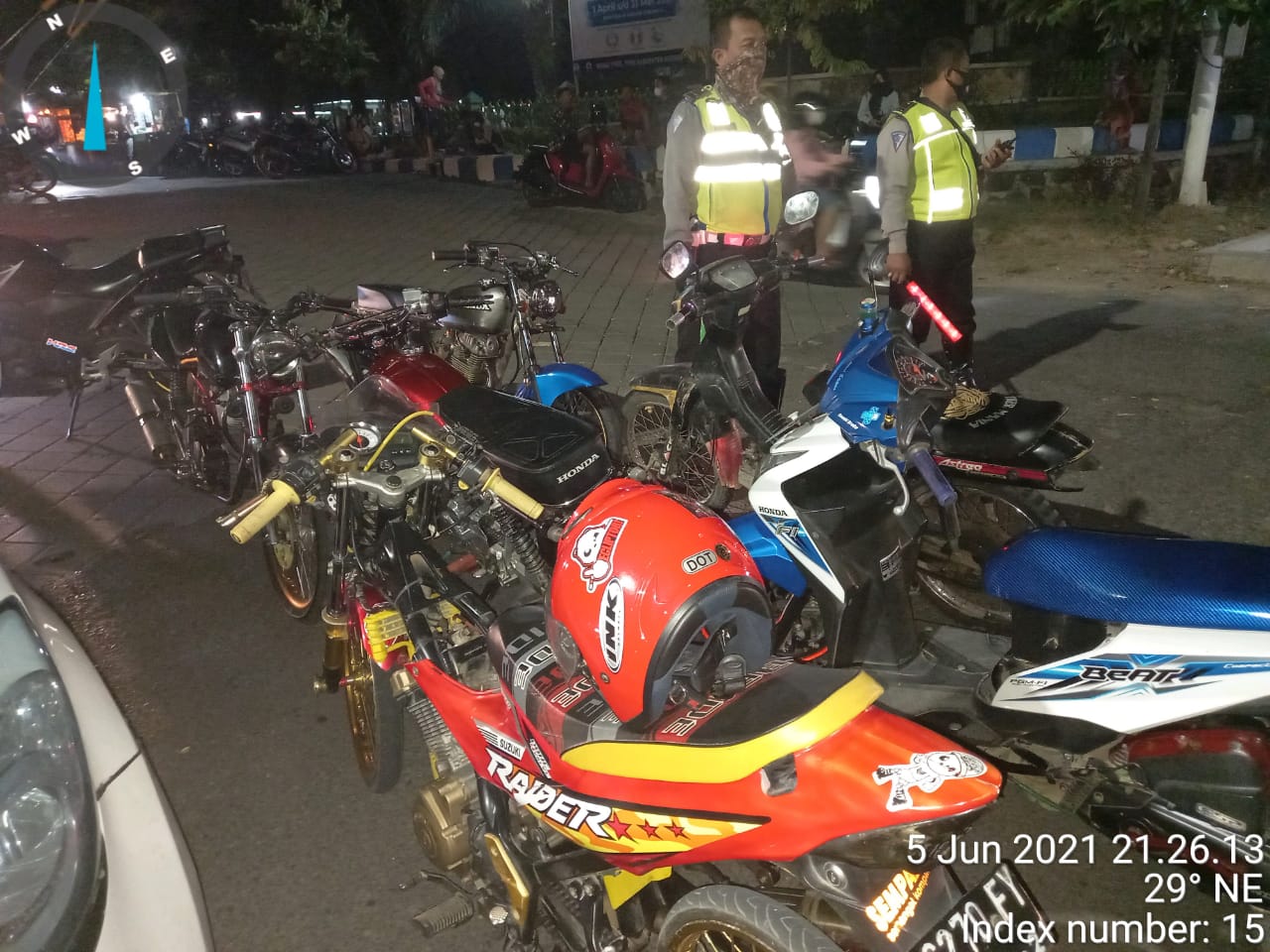 SeputarKita, Madiun – Satlantas Polres Madiun terus melakukan penindakan terhadap pengguna knalpot racing atau brong. Penindakan knalpot brong tersebut dilakukan di sekitar alun – alun Kabupaten Madiun, pada Sabtu (5/6/2021) malam.