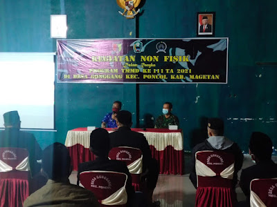 SeputarKita, Magetan – Program non fisik TNI Manunggal Membangun Desa (TMMD) ke-111 Kodim 0804/Magetan salah satunya memberikan penyuluhan, bekerjasama dengan Dinas Kependudukan dan Catatan Sipil (Dindukcapil) Kabupaten Magetan, Satgas TMMD menggelar sosialisasi pelayanan publik dan kependudukan, di Balai Desa Gonggang. Sabtu malam (19/06/2021)