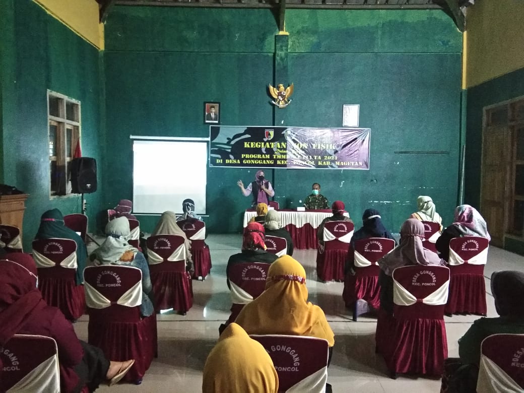 Dengan mengandeng Dinas Kesehatan (Dinkes) Kab. Magetan, satgas TMMD mengelar penyuluhan kesehatan kepada masyarakat Desa Gonggang, Kec Poncol Kab. Magetan. Senin(28/06/2021)