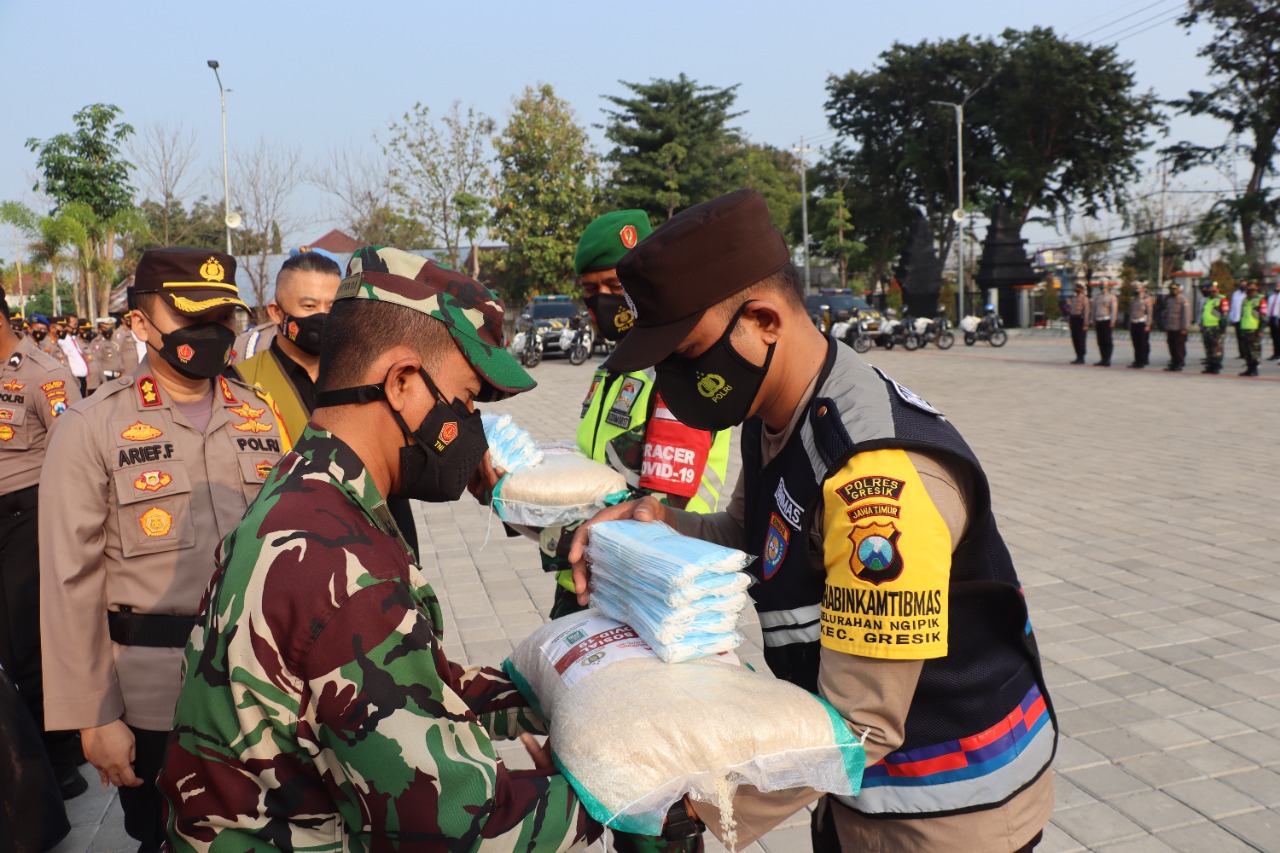 SeputarKita, Gresik – Kepala Kepolisian Resor Gresik AKBP Arief Fitrianto SH, SIK, MM melepas secara simbolis, bantuan berupa 5 ton beras dan masker kesehatan kepada Bhabinkamtibmas dan Babinsa untuk disalurkan bagi masyarakat terdampak pandemi Covid-19.