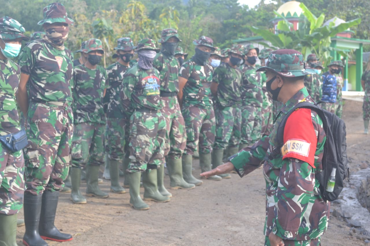 Dalam apel pagi ini, setelah dilaksanakan pengecekan jumlah personil, Kapten Marinir Tejo Nugroho menyampaikan beberapa penekanan tentang kegiatan minggu awal pengerjaan sasaran fisik TMMD di Desa Gonggang.