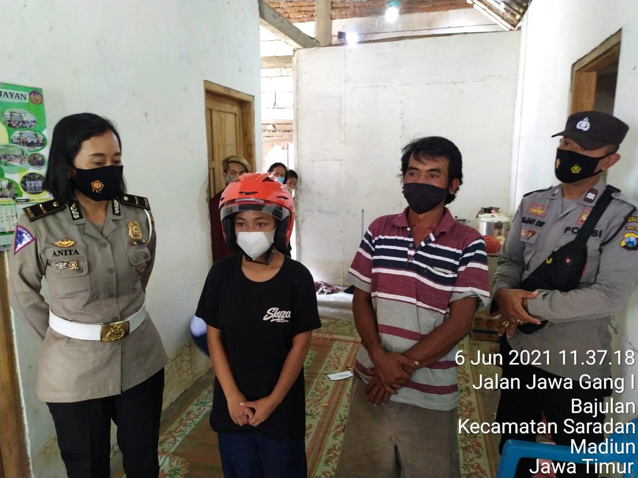 Selain memberikan pembinaan dan edukasi, Satlantas Polres madiun juga memberikan Helm standart SNI gratis serta memberikan imbauan kepada keluarga yang bersangkutan.