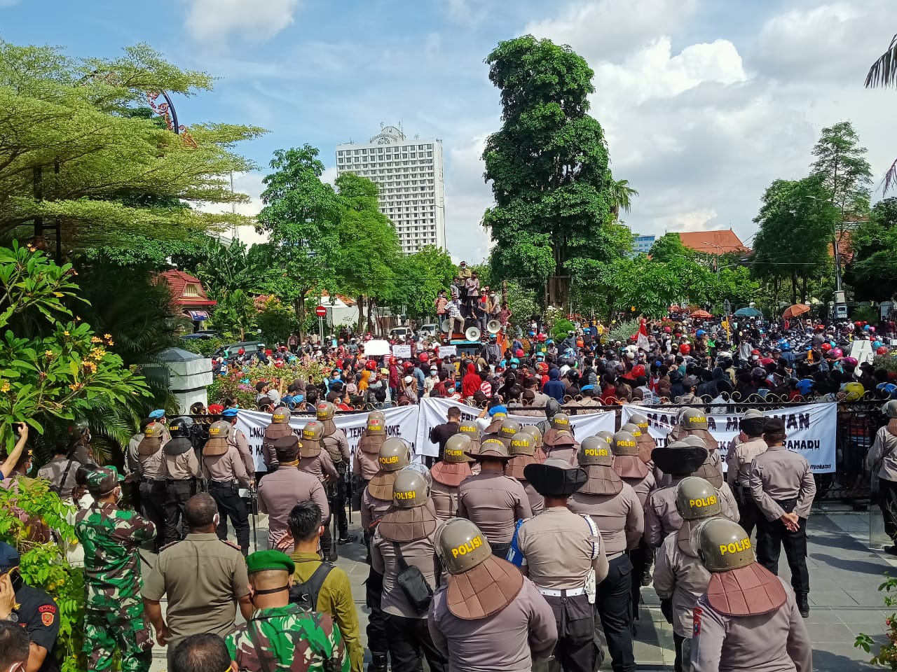 Warga Madura Bersatu Demo Balai Kota Surabaya , Minta Penyekatan Di Suramadu Dihentikan