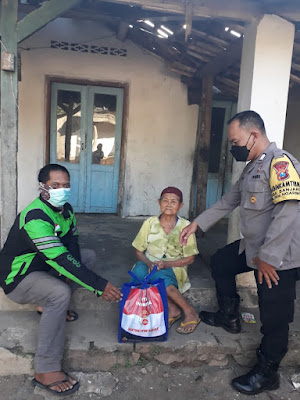 Cegah Kerumunan, Polres Magetan Kirim Paket Sembako Ke Warga Dengan Jasa Ojol
