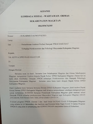 Berdasarkan Surat Permohonan Audiensi dengan Nomor 01/KABMGT/ALWO/VII/2021 Aliansi Wartawan – Ormas – SeKabupaten Magetan mengajukan audiensi dengan Ketua DPRD Magetan, dan Hasil dari audiensi dengan DPRD bisa dijembatani dan dikawal untuk audiensi dengan Pemerintah Kabupaten Magetan.