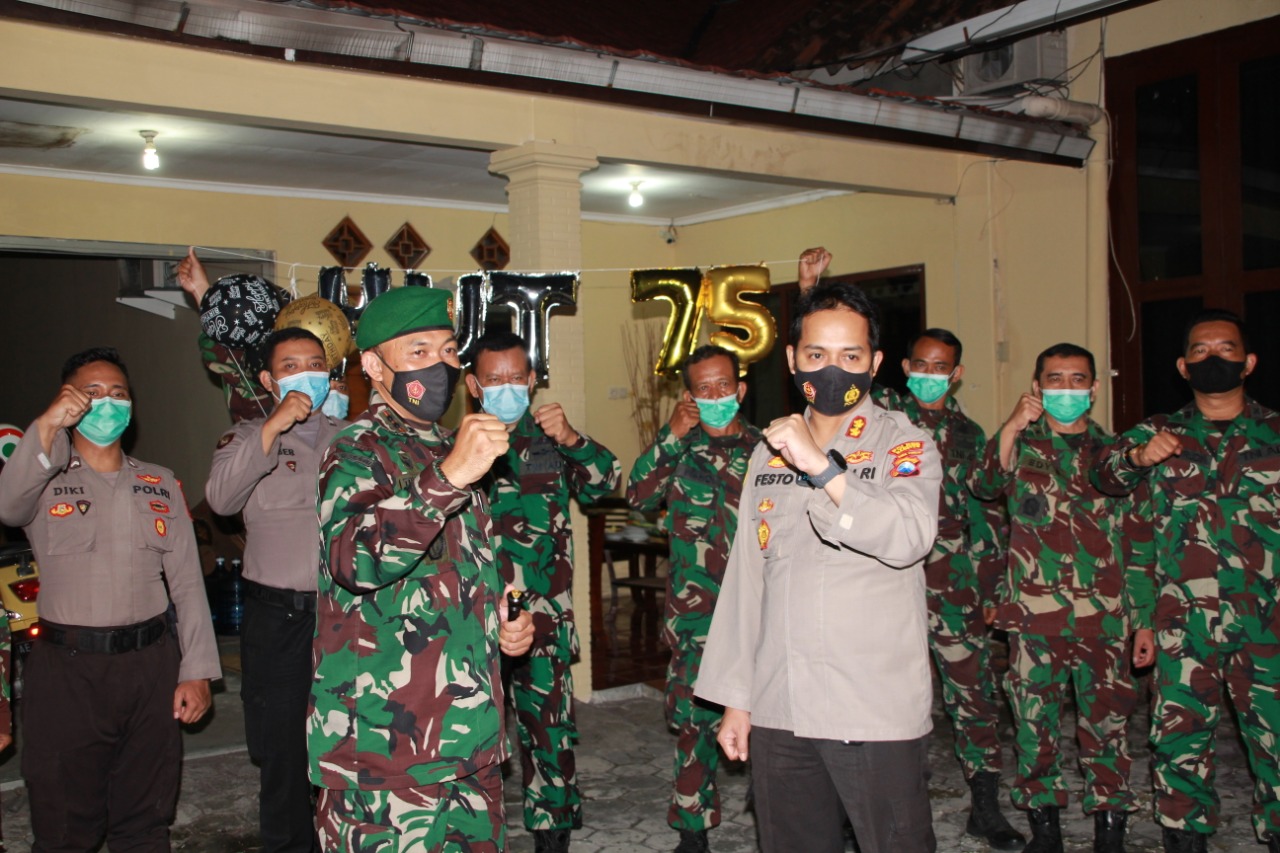 Didampingi Kasdim, Perwira staf Kodim, Dandim 0804/Magetan Letkol Inf Ismulyono Tri Widodo S.I.P mendatangi Kapolres Magetan di kediaman (rumah dinas) Jln Inspol Ismiadi dengan suasana sederhana, sambil membawa kue tart berhias lilin dan bertemakan HUT Bhayangkara ke-75. Tentu saja dengan tak lupa menyanyikan lagu “Selamat Ulang Tahun”, membuat kapolres terharu dan bangga.