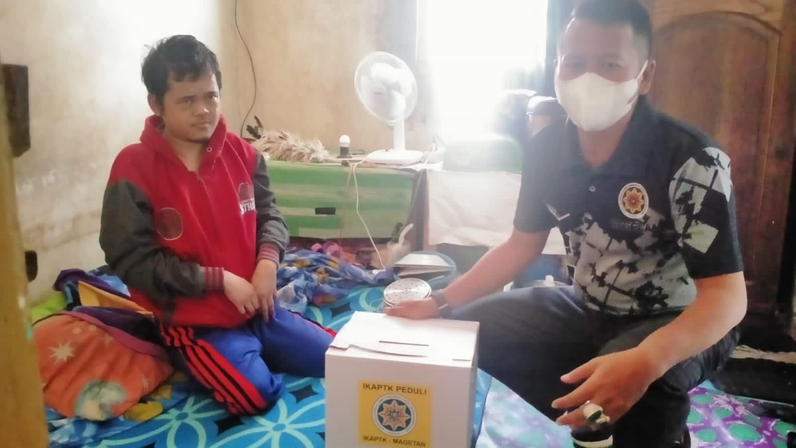 “Hari ini IKAPTK Magetan melakukan bakti sosial, menyalurkan paket sembako kepada masyarakat yang terdampak pandemi COVID-19 di tengah PPKM darurat,” ucap ketua IKAPTK Magetan Wely Kristanto.