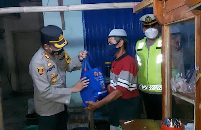Dalam pelaksanaan patroli skala besar kali ini disertai pembagian bantuan sosial (bansos)