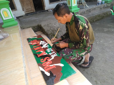 Seperti yang satu ini, sebagai kenangan bahwa selama TMMD telah terjalin sebuah hubungan komunikasi yang manis antara Satgas TMMD ke 111 Kodim 0804/Magetan dengan masyarakat, terutama sejumlah warga di Dusun Templek, meminta personil satgas agar melukis motif loreng di posklamling yang baru selesai dibangun.