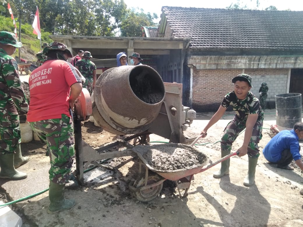 SeputarKita, Magetan – Kehadiran ratusan anggota TNI yang tergabung dalam Satgas Tentara Manunggal Membangun Desa (TMMD) ke 111 Kodim 0804/Magetan di Desa Gonggang Kecamatan Poncol memberikan suasana yang berbeda di daerah tersebut. Warga saat ini semakin terbiasa dengan kehadiran anggota TNI di tengah-tengah mereka. Minggu(04/07/2021)