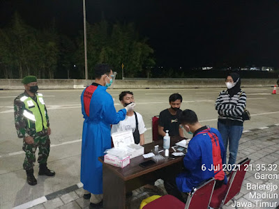 SeputarKita, Madiun – Hari ke empat pelaksanaan PPKM Darurat, sejumlah pengendara dilakukan Swab Antigen di Pos Pengendalian PPKM Darurat di Exit Tol Dumpil Madiun.