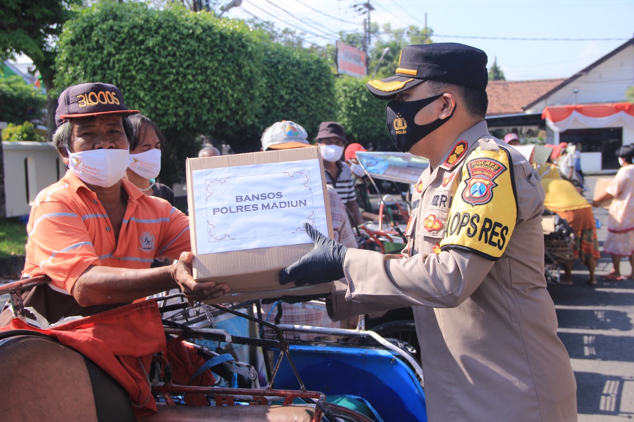 Polres Madiun Bagikan 1250 Paket Sembako Kepada Masyarakat Terdampak Covid-19