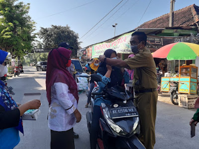 Pembagian masker kali ini di tempat keramaian khususnya pasar Mojotimun Kecamatan lembeyan yang ramai pedagang dan pengunjung pasar , masker yang dibagikan secara gratis kepada para pengunjung pasar harapanya bisa memutus penyebaran virus khususnya di wilayah Lembeyan.