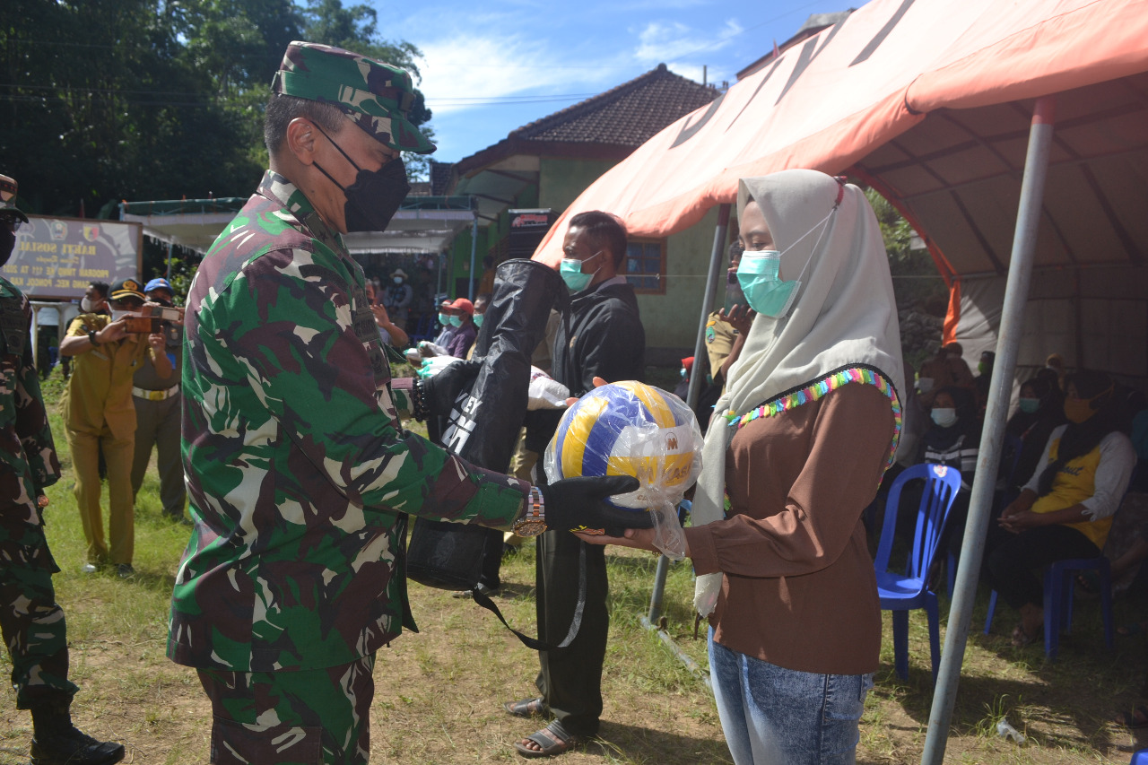 SeputarKita, Magetan – Pimpinan Tim Pengawas dan Evaluasi (Wasev) TMMD, Brigjen TNI Gregorius Suharso, beserta rombongan memberikan bantuan kepada masyarakat Dusun Templek, berupa alat olahraga, dan sembako Selasa (07/07/2021).