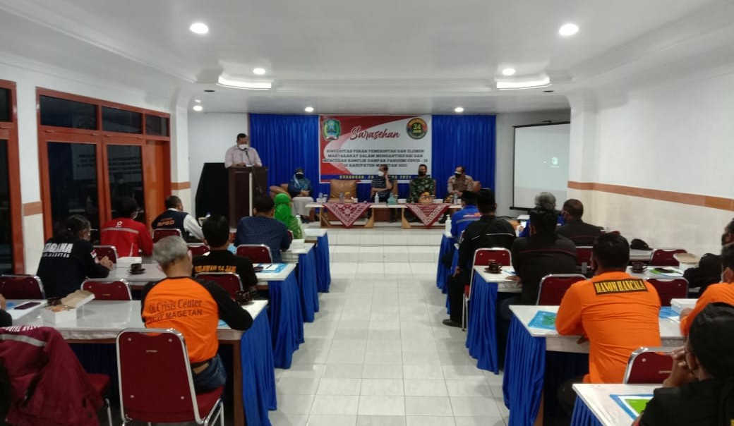 Dalam merespon pandemi Covid-19, Pemerintah Kabupaten Magetan, TNI, POLRI, Relawan Kemanusiaan, ORMAS, Organisasi Keagamaan, Organisasi Pencak Silat dan Seluruh Elemen Masyarakat di Kabupaten Magetan telah menunjukan solidaritas serta kepeduliannya dalam bersama-sama mengantisipasi, mencegah dan menanggulangi penyebaran Covid-19 di Kabupaten Magetan.