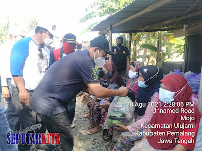Dengan mematuhi Protokol kesehatan yang ketat, Bupati Pemalang Mukti Agung Wibowi ST., M.si, beserta rombongan, memberikan kurang lebih sebanyak 1200 paket sembako di beberapa desa seperti Desa Mojo, Limbangan, Blendung, Ketapang, Kaliprau , dan desa Kertosari secara simbolis, Sabtu 28 Agustus 2021.