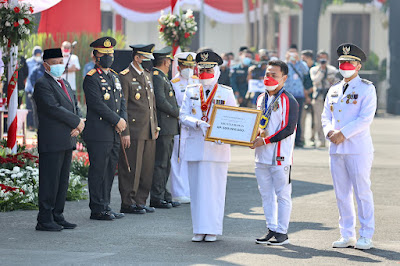 Setelah melaksanakan upacara bendera dilanjutkan dengan pemberian tanda penghormatan “Jer Basuki Mowo Beyo” kepada Eko Yuli Irawan Peraih medali perak Olimpiade Tokyo cabang olah raga angkat besi kelas 61 Kilo.