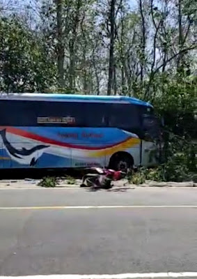 “Setelah bus mendahului kendaraan lain yang berjalan di depannya dan melewati garis marka, kemudian bus Sugeng Rahayu No. Pol W 7108 UZ bertabrakan dengan sepeda motor Honda Supra AD 4655 PI yang berjalan dari arah Timur ke Barat (berlawanan),” terang Ipda Nanang.