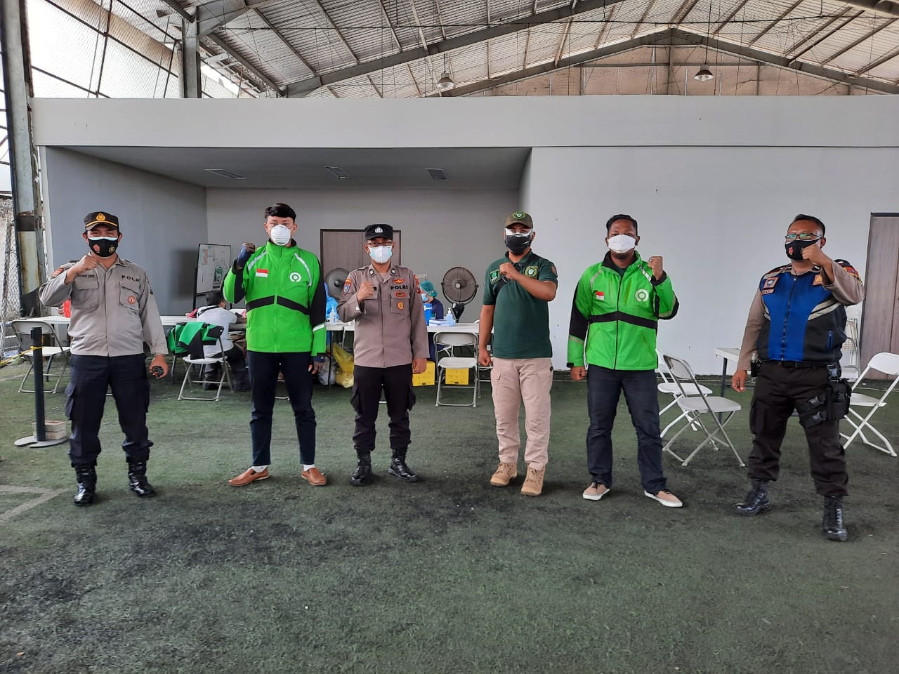 SeputarKita, Surabaya – Jajaran Polrestabes Surabaya bekerjasama dengan gojek operasional Surabaya melaksanakan kegiatan vaksin untuk driver gojek surabaya hari ini di halaman kantor gojek surabaya, (8/8/2021)