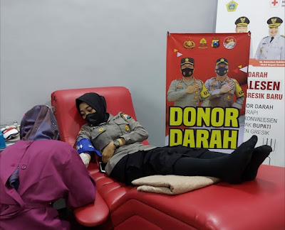 Dengan mengenakan seragam dinas, para Polwan Polres Gresik menjalani seluruh prosedur donor darah. Mulai dari pengecekan kesehatan dari suhu tubuh, tekanan darah dan lain sebagainya hingga darahnya diambil