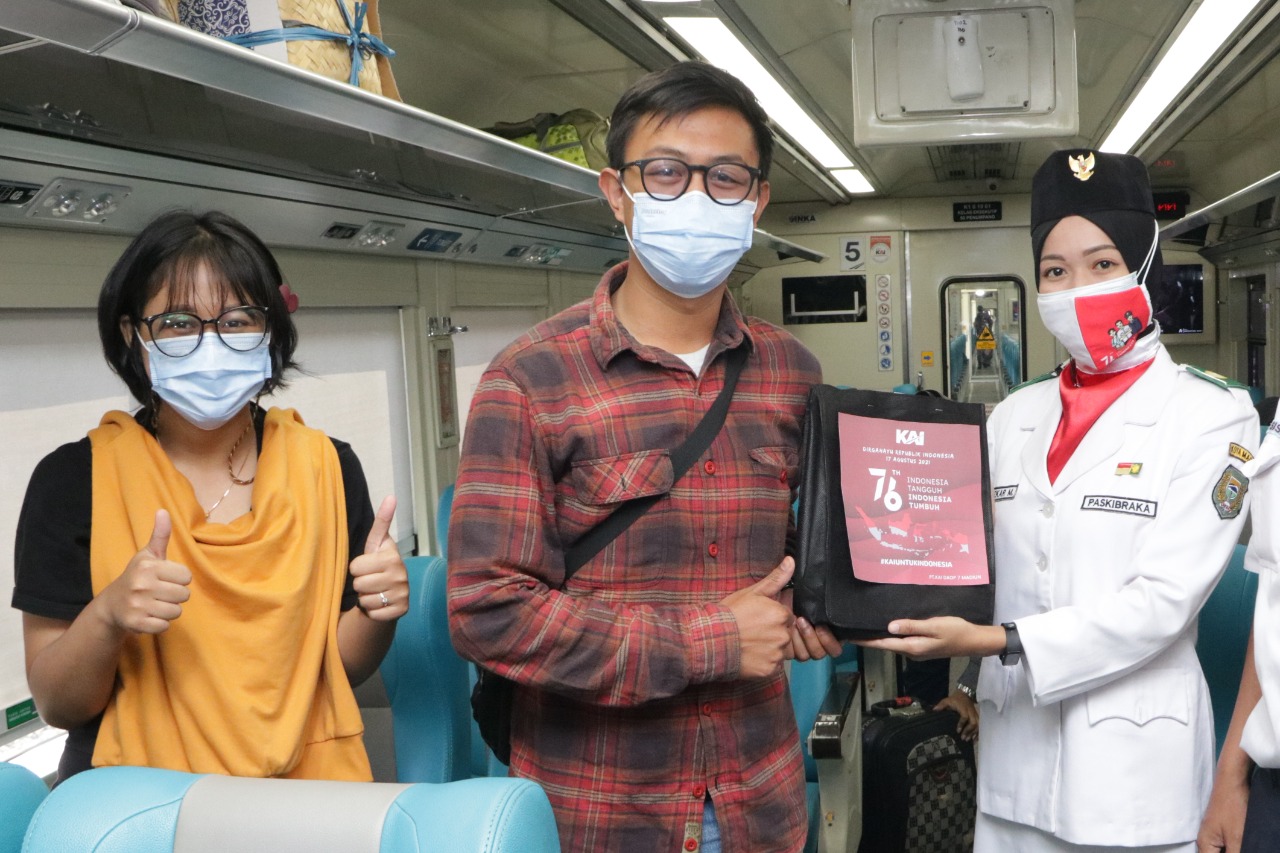 “Kegiatan ini bertujuan untuk menyemarakan HUT ke-76 RI serta untuk menghormati, menghargai, dan mengenang jasa para pahlawan yang telah berhasil merebut kemerdekaan RI sekaligus memberikan apresiasi kepada pelanggan yang telah memilih KA sebagai moda transportasinya,”ucap Ixfan Hendriwintoko, Manager Humas PT KAI (Persero) Daop 7 Madiun.