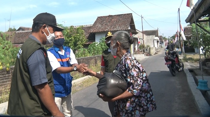 Sebanyak 45 paket sembako diberikan secara door to door oleh anggota PPWI Magetan yang didampingi Kepala Kelurahan Maospati beserta perangkat.