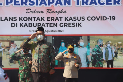 Bupati Gresik telah meluncurkan petugas relawan tracer di halaman Pemkab Gresik. Setidaknya ada 100 orang relawan siap sedia melakukan tracing, testing dan treatment (3T), Jumat (6/8/2021).