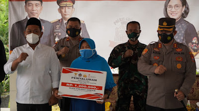 Kapolres Gresik AKBP Mochamad Nur Azis, S.H., S.I.K., M.Si bersama forkopimda Gresik menyalurkan bantuan tunai secara langsung kepada 200 (dua ratus) Pedagang Kaki Lima dan Warung yang ada di wilayah Kecamatan Driyorejo Kabupaten Gresik.