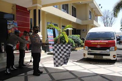 Kegiatan launching dipimpin langsung oleh Kapolres Magetan AKBP Yakhob Silvana Delareskha S.I.K., M.Si. beserta para pejabat utama di halaman Mako Polres Magetan. Sebanyak 3 mobil jenis minibus telah disiapkan guna mendukung kegiatan vaksinasi door to door di daerah terpencil.