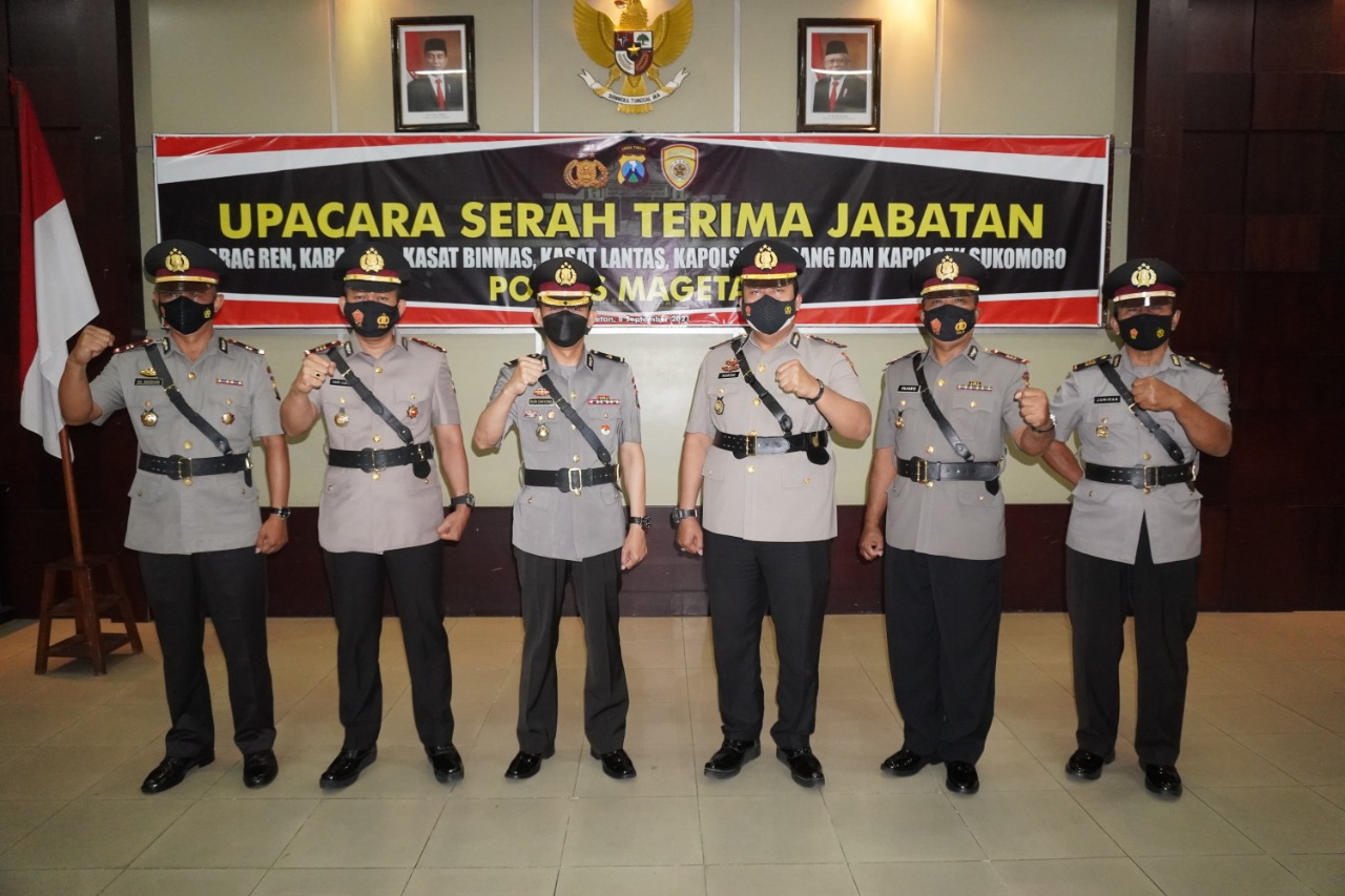 Ada 4 pejabat utama dan 2 Kapolsek yang mengalami pergantian di Polres Magetan yaitu Kabag Perencanaan, Kabag Logistik, Kasat Binmas, Kasat Lantas, Kapolsek Sukomoro dan Kapolsek Parang.
