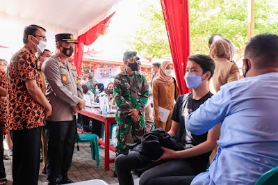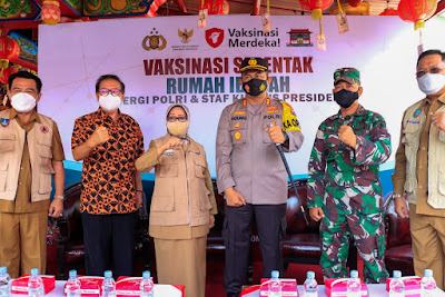 “Percepatan vaksinasi nasional ini sesuai dengan instruksi Presiden. Jadi hari ini kita laksanakan dengan sasaran tempat ibadah dengan 300 orang yang divaksin,” ucap Kapolres.