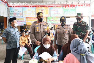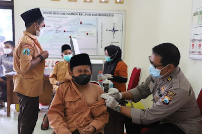 Kapolres menyampaikan, pihaknya bersama dengan segenap jajaran Forkopimca Kecamatan Puri disini dan Kepala Desa Balongmojo ingin melihat langsung kegiatan vaksinasi untuk memastikan kegiatan berjalan aman lancar dan tetep mematuhi protokol kesehatan.