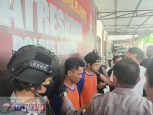 Seputarkita,Jombang,– Satuan Reserse Kriminal (Satreskrim) Polres Jombang berhasil mengungkap dan menangkap tiga pelaku kejahatan dalam dua kasus berbeda yang terjadi di Kabupaten Jombang. Ketiga pelaku diketahui merupakan residivis alias pelaku lama.