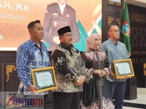 Seputarkita,JOMBANGKAB – Bupati Jombang, Warsubi S.H., M.Si, bersama segenap Forkopimda Kabupaten Jombang menyambut hangat Kepala Kejaksaan Negeri (Kajari) Jombang dan Ketua Pengadilan Negeri Jombang yang baru. Disambut oleh rintik hujan, acara yang berlangsung khidmat tersebut dilaksanakan di Pendopo Kabupaten Jombang pada Kamis, (6/11) malam.