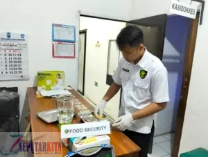 SeputarKita,Nganjuk,– Satuan Pelayanan Pemenuhan Gizi (SPPG) Kecamatan Pace bekerja sama dengan Sidokkes Polres Nganjuk menggelar kegiatan Food Safety dalam program Makan Bergizi Gratis (MBG) di Klinik Pratama Polres Nganjuk, Selasa (11/11/2025). Kegiatan ini dilakukan sebagai upaya deteksi dini terhadap kandungan racun dalam makanan yang disajikan kepada masyarakat.