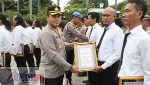 Upacara berlangsung khidmat dan diakhiri dengan pemberian piagam penghargaan kepada seluruh personel yang telah ditetapkan. Penghargaan ini diharapkan menjadi pemacu semangat bagi anggota Polres Nganjuk untuk terus meningkatkan kinerja dalam menjaga keamanan dan ketertiban masyarakat. (NT)