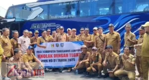 keberangkatan pengurus DPC Apdesi Kabupaten Tanggamus ke-jakarta sebagai bentuk penolakan terhadap Peraturan Menteri Keuangan (PMK) Nomor 81 Tahun 2025.