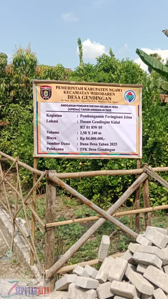 SeputarKita, Ngawi – Akhirnya, warga RT 001/RW 005 Desa Gendingan, Kecamatan Widodaren, Kabupaten Ngawi, akan merasakan kemudahan mobilitas yang lebih baik! Pemdes Gendingan telah merealisasikan pembangunan jalan paving pada tahun anggaran 2025, sebagai langkah nyata meningkatkan infrastruktur desa.