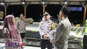 Seputarkita,Nganjuk – Kapolres Nganjuk AKBP Henri Noveri Santoso, S.H., S.I.K., M.M bersama Wakapolres dan pejabat utama Polres Nganjuk melakukan pemantauan arus mudik dan pergerakan penumpang di sejumlah titik strategis, salah satunya Stasiun Kereta Api Nganjuk, Rabu malam (24/12/2025).