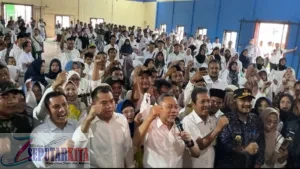 SeputarKita,Pemalang – Kegiatan pasar murah yang digelar di GOR Kelangdepok, Kecamatan Bodeh, Kabupaten Pemalang, pada Jumat, 26 Desember 2025, merupakan agenda Partai Amanat Nasional (PAN) sebagai bentuk kepedulian terhadap masyarakat. Acara tersebut dihadiri Menteri Koordinator Bidang Pangan Zulkifli Hasan dan Menteri Kelautan dan Perikanan Sakti Wahyu Trenggono.